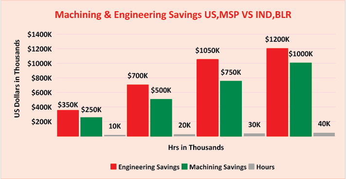 $ Savings - Machining/Engineering ServicesUSA MSP Vs India BLR